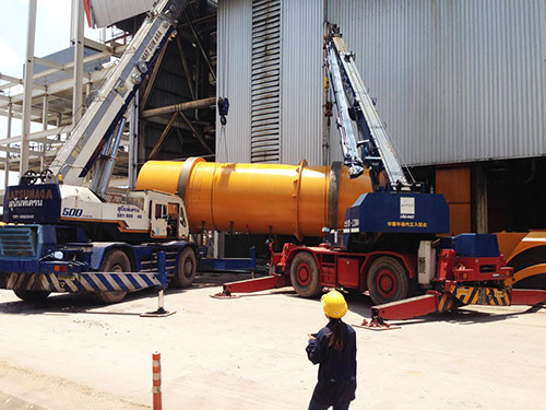 The cascade rotary dryer & cooler has the fan after the heated drying air flows in the opposite direction as the product (counter-current).