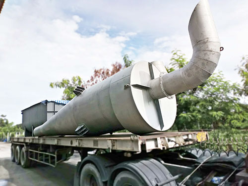 bottom of the tapered cone. The solid-free fluid or gas is removed along the center line of the collector via a vortex finder. A cyclone collector is a compact device capable of processing large volumes of effluent; however, pressure energy is expended in its operation. It removes particles from the effluent stream less effectively than bag filters or electrostatic precipitation.